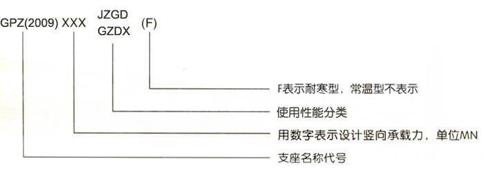2.GPZ(2009)JZ減震型盆式支座型號表示方法: